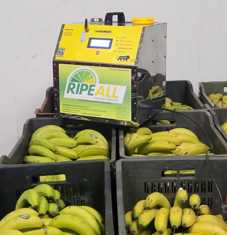 The Fruit Ripening Machine operates ethylene gas, a natural plant hormone responsible for the ripening process.